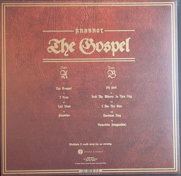"...So yes, Årabrot are still unhinged."-Drowned in Sound 9/10"Årabrot have always been both weird and heavy, with the ratio varying from album to album. On The Gospel, they're at their weirdest and best"-The Wire (UK)"Nernes' enigmatic personality dominates, reminiscent of rock's classic frontmen, his spiteful croon weaving tales of sex and war"-Metal Hammer 8/10