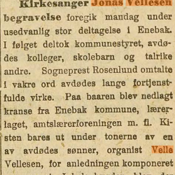 Jonas Vellesen var en skolemann , lærebokforfatter og sanger fra Bjerkreim.