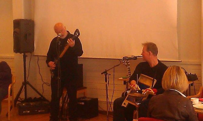 John Josefsen spiller på munnspill, men også på bass laget av en greip, slidegitar laget av en spade, samt vokal.