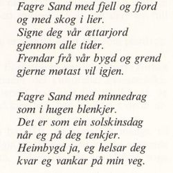 Theodor Halvorsen var høyt verdsatt som bygdedikter i Sand i Suldal. Han skrev tekster og sanger til flere anledninger.