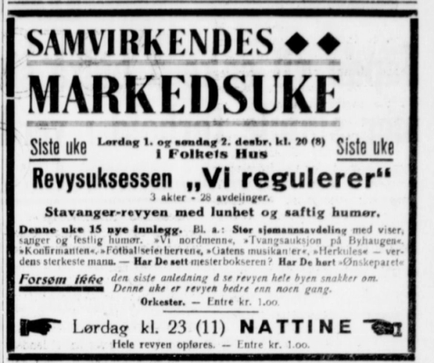 «Vi regulerer» var en revy i regi av Samvirkende Markedsuker, skapt av stavangermannen Laurits Torssen.