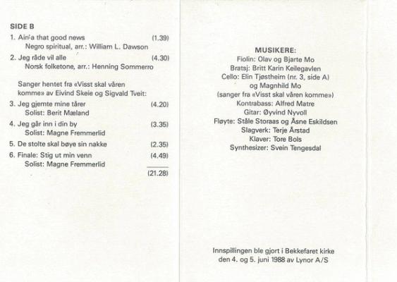 - Sanger hentet fra "Visst skal våren komme" av Eivind Skeie og Sigvald Tveit: Jeg gjemte mine tårer (solist Berit Mæland)